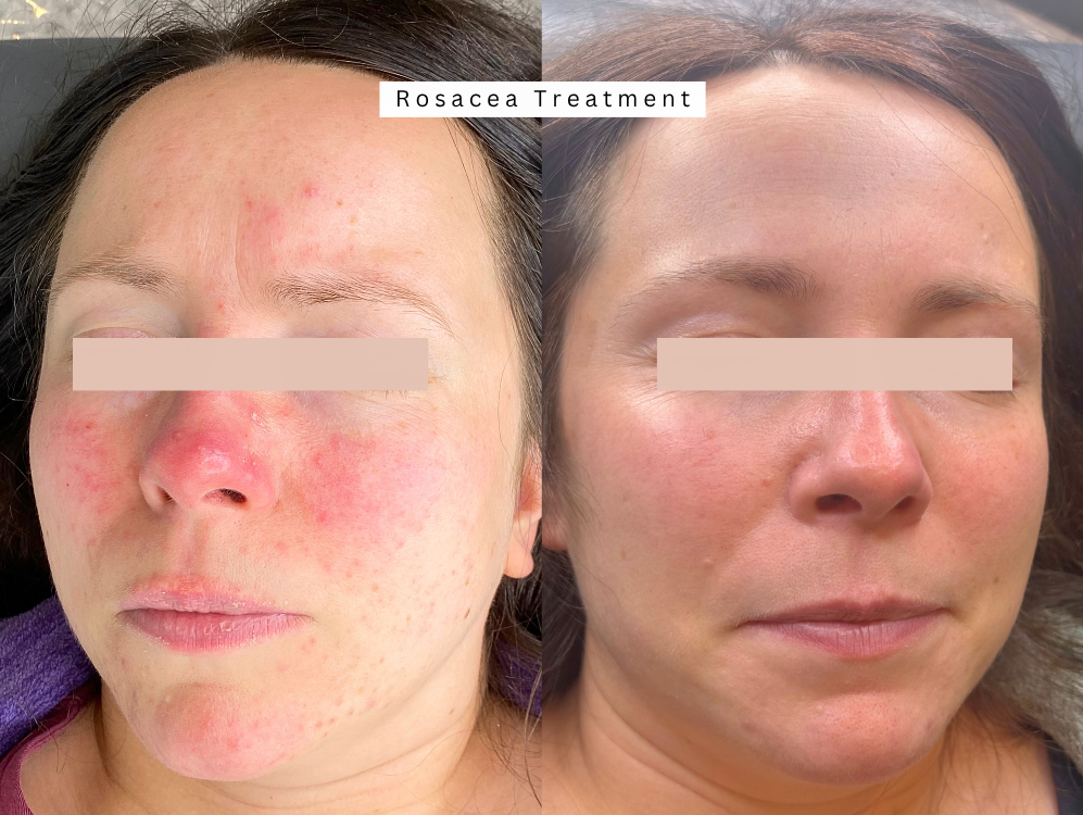 Full face treatment targeting any concerns present such as redness, Thread Veins, Cherry Angioma, Age Spots, Pigmentation, rejuvenation. After one pass with the device a second pass can be used on select individual target areas such as Thread Veins and Age Spots for even greater results.